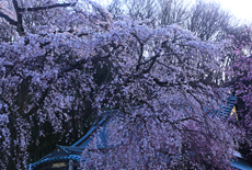八王子市高月町の円通寺には、本堂前の広庭に自立している見事なシダレザクラがある。 傘を広げたような大きな樹冠を形成し、石垣上の築地塀の外まで花枝を垂らす姿は美しく、「八王子八十八景」に選定されている。 天台宗圓通寺は、延喜三年(903年)開創と伝えられる古刹。 武相28ケ寺の本寺で、天正年間(1573年~1592年)には高月城主大石氏の庇護のもと、3万坪の寺領を有した大寺院であった。 しかし昭和20年7月6日の空襲によって、塔堂伽藍を灰燼に帰し、戦後復興されている。