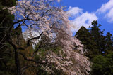 仙台市青葉区八幡の文殊菩薩堂境内に立つ市保存樹木に指定されているエドヒガンザクラとシダレザクラ。 枝垂れ桜は推定樹齢400年ほど、江戸彼岸桜は推定樹齢200年ほどである。 文殊菩薩堂は、伊達政宗の家臣・嶺八兵衛が1603年に建立したと伝わる。 卯年生まれの守り本尊として親しまれている。 現在の菩薩堂は1716年に改修されたもので、屋根にはウサギが逆立ちした「波ウサギ」が飾られている。