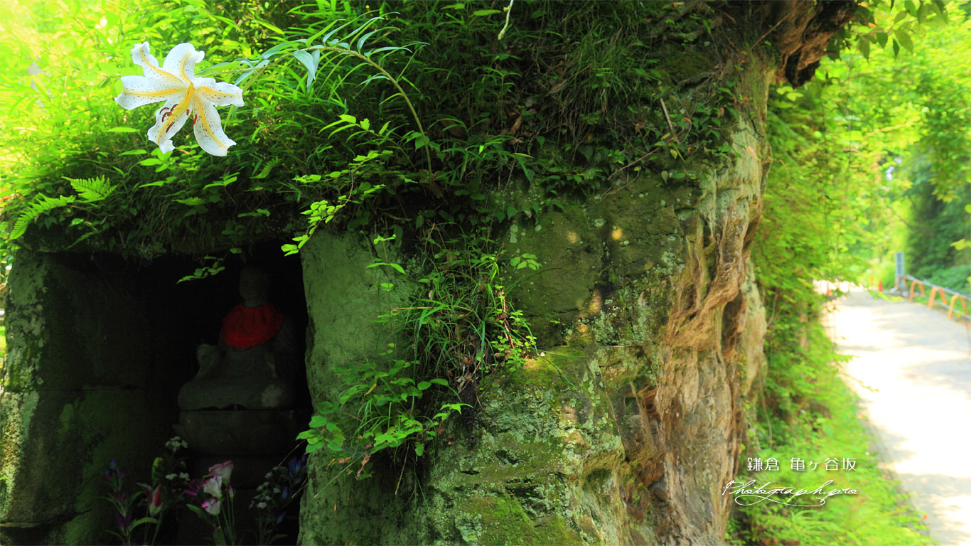 鎌倉亀ヶ谷坂 ヤマユリと延壽堂地蔵の壁紙はHD横長ディスプレイ(1366x768ドット)との整合でオリジナル写真の上下をカットしてあります。