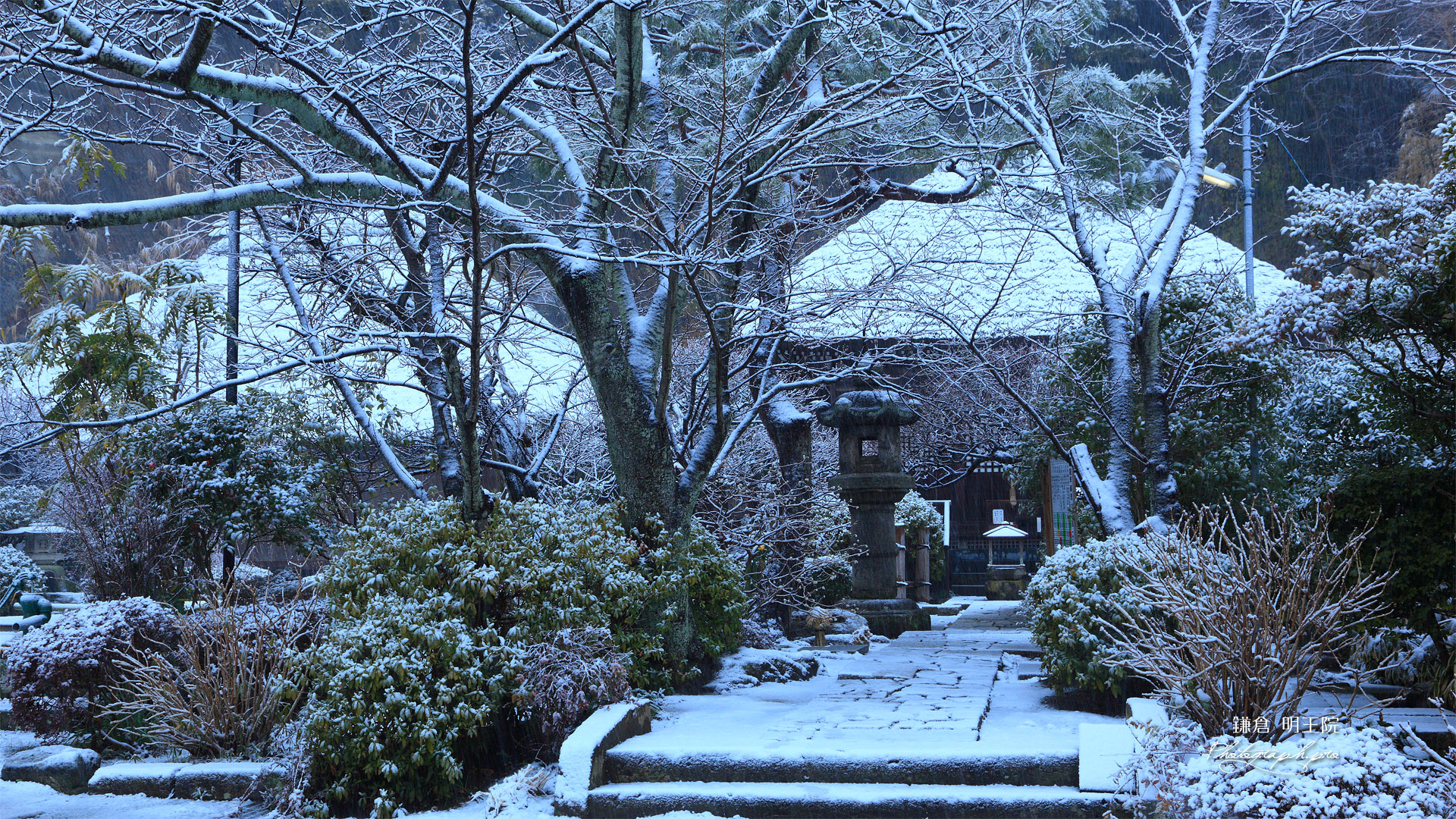 「明王院 雪化粧の参道」の壁紙はフルHD横長ディスプレイ(1920x1080ドット)との整合でオリジナル写真の上下をカットしてあります。