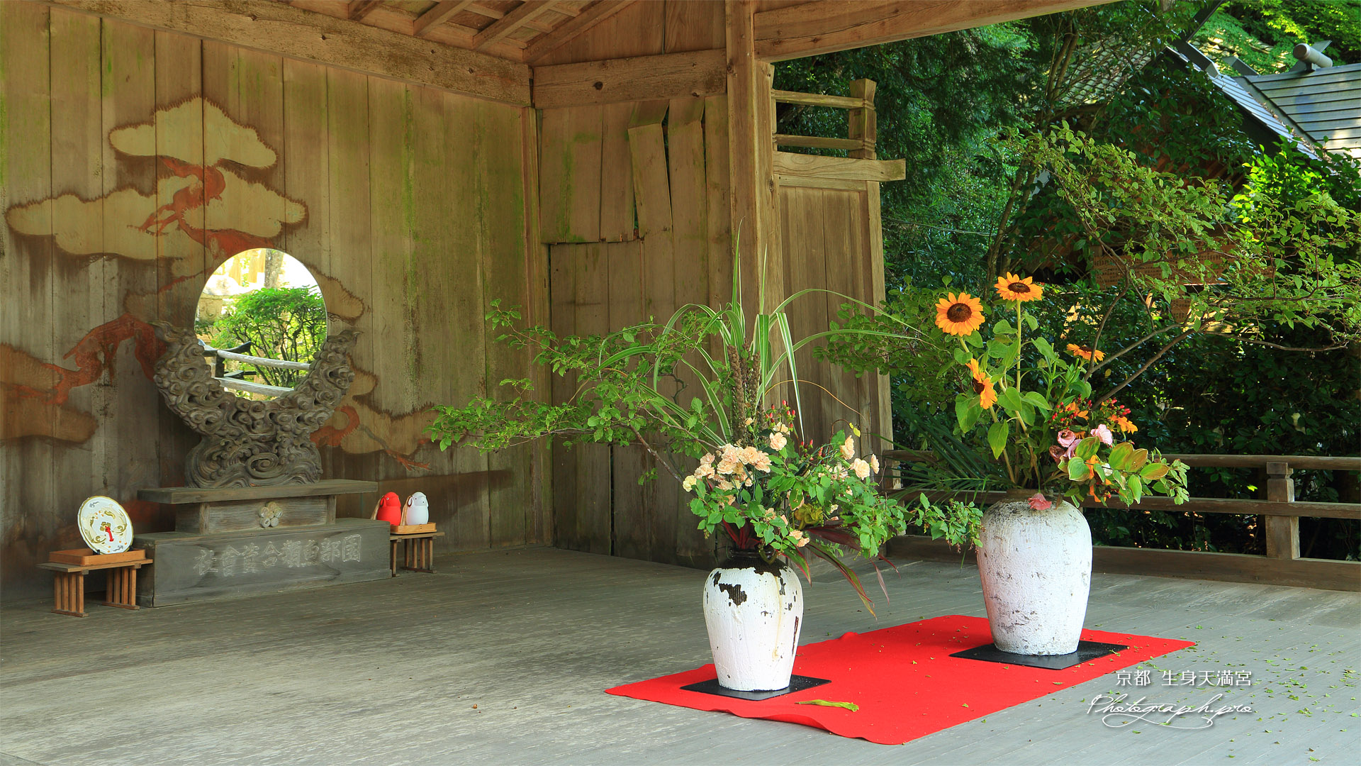 「生身天満宮 夏花いけばな」の壁紙はフルHD横長ディスプレイ(1920x1080ドット)との整合でオリジナル写真の上下をカットしてあります。
